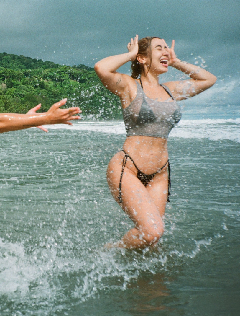 Our pieces are made with high-quality materials and features a natural quartz intended to cleanse your energy and space. Every quartz aligns with water and sun, so don’t forget to recharge the energy of your stones in the ocean and enjoy the sun with our designed to tan mini bikinis.